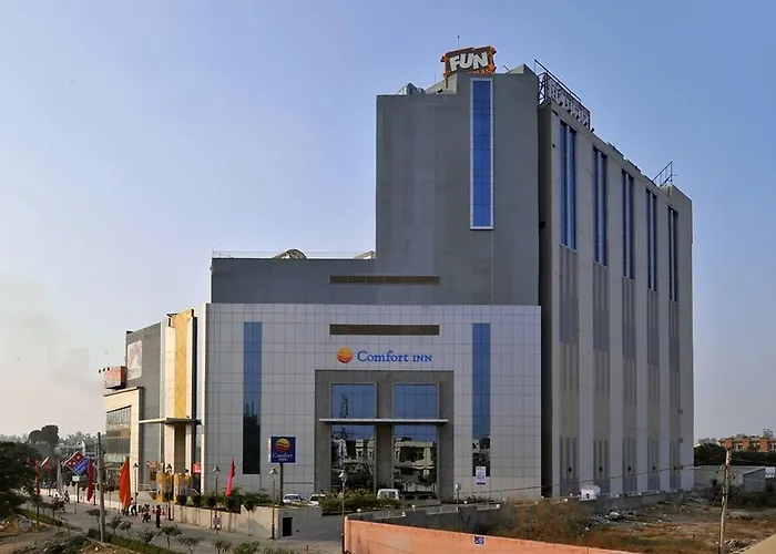 Comfort Inn Tulip Heights is a 5-star Bathinda hotel known for its modern amenities and diverse dining options. It features a chic Rooftop Fine Dining Restaurant and a well-equipped fitness center.