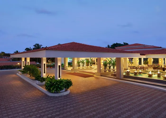 Holiday Inn Resort Goa By Ihg is a 5-star beachfront property attracting families and wedding parties, featuring extensive amenities including a full Ayurvedic spa, kids' club, and multiple dining options. The hotel boasts a Booking.com rating of 8.9/10.